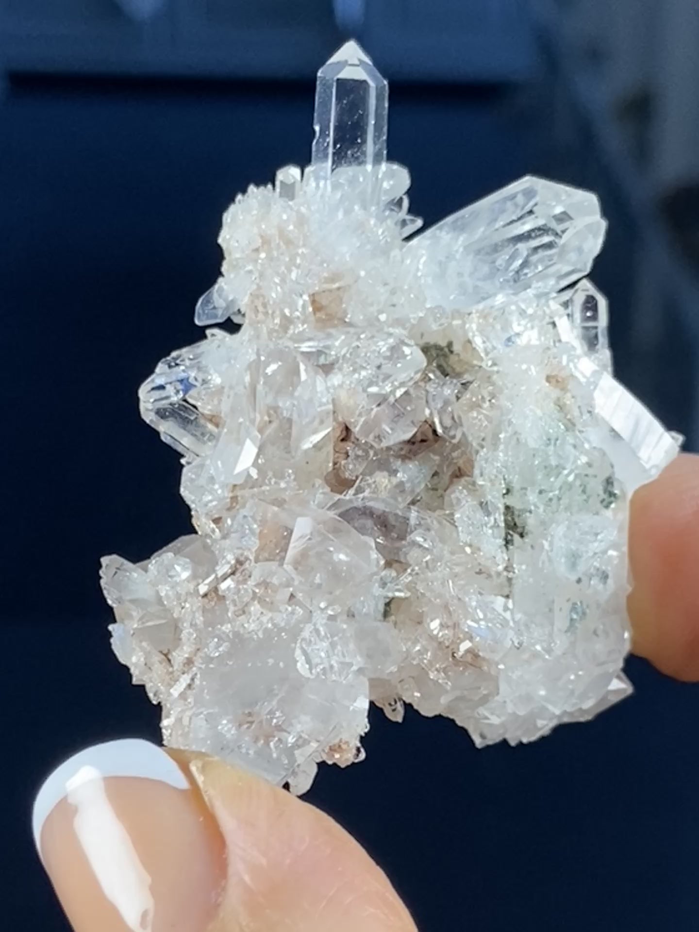 Sacred Pink Lemurian Quartz Flat Cluster with Green Inclusions