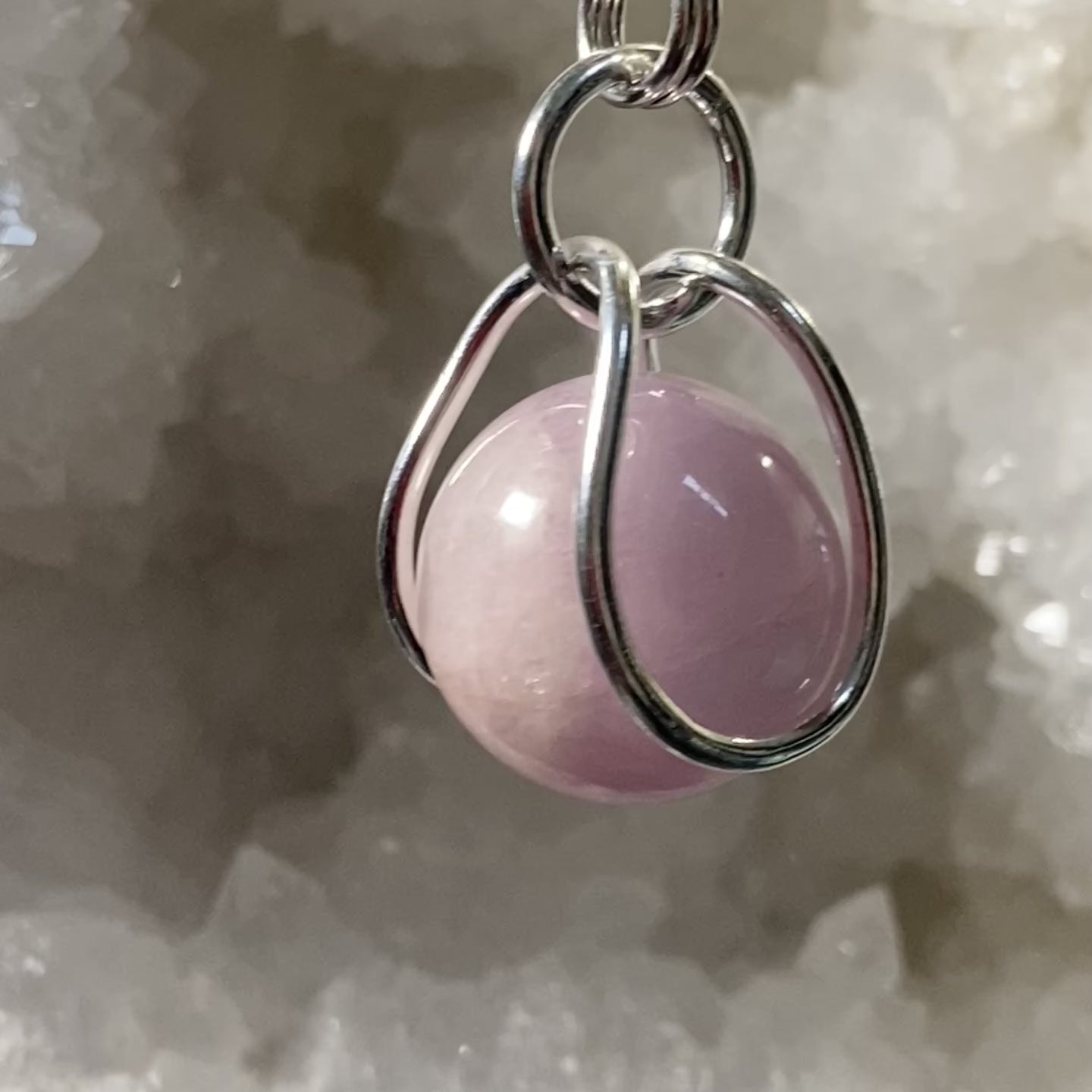 Kunzite Sphere in Sterling Silver Cage - Bespoke by Song of the Sea