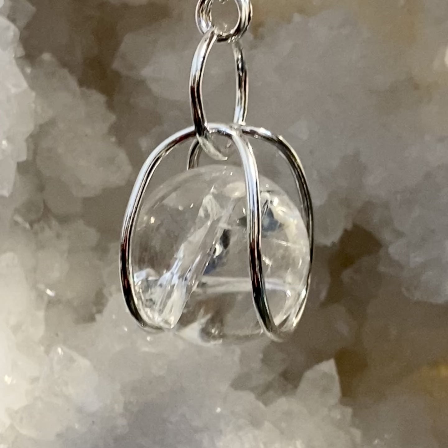 Clear Quartz Sphere in Moving Cage – Colombia - Bespoke by Song of the Sea