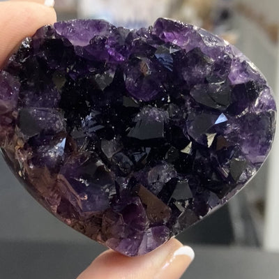 This is a beautiful Amethyst heart weighing 159 grams, sourced from Uruguay. Uruguayan Amethyst is renowned worldwide for its exceptionally high saturation, displaying a deep, rich colour that ranges from intense violet to royal purple. This piece captures that stunning depth of colour and has been expertly shaped into a perfect heart, making it comfortable to hold and ideal for direct energy work.