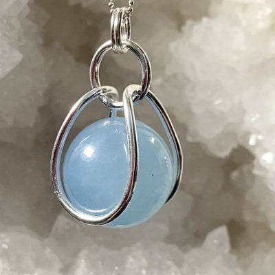 Aquamarine Sphere in Sterling Silver Cage - Bespoke by Song of the Sea