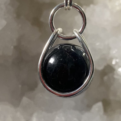 This deep, inky Blue Tiger’s Eye sphere has been captured in one of Wendy’s signature handmade sterling silver cages. A fluid, minimalist design that allows the crystal to move freely within its setting. The effect is both grounding and mesmerising, with subtle chatoyancy catching the light as it turns.