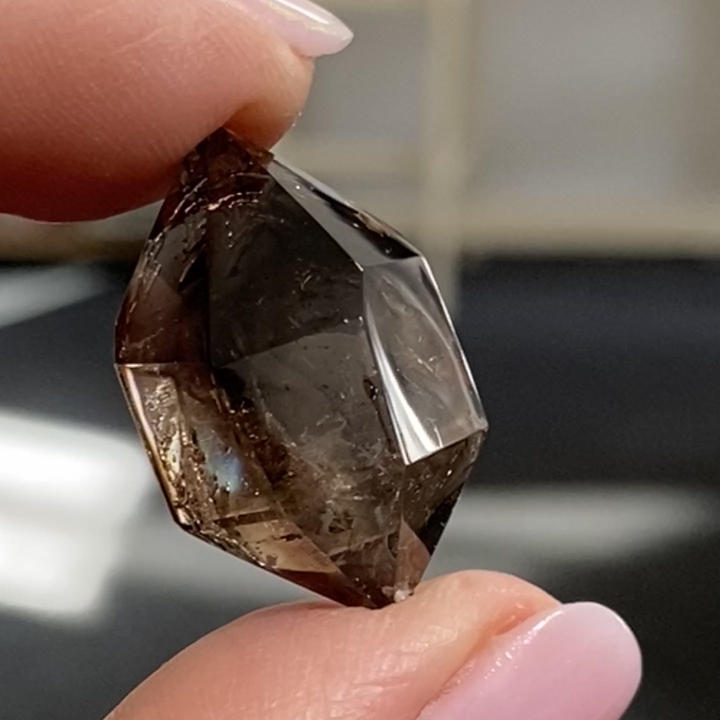 Tiny… but don’t underestimate it. This natural double-terminated Smoky Quartz from Brandberg carries that unmistakable presence these crystals are known for. Deep, warm smoky tones with flashes of clarity, all held in a perfectly formed little DT.