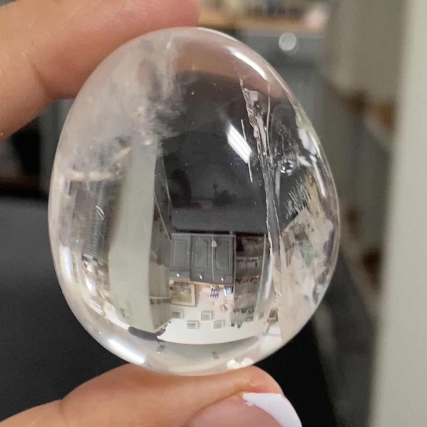A beautifully clear Madagascan Quartz egg with wisps of internal frost and feather-like veils. This piece is wonderfully tactile and perfectly sized to hold, bringing a sense of stillness and presence.