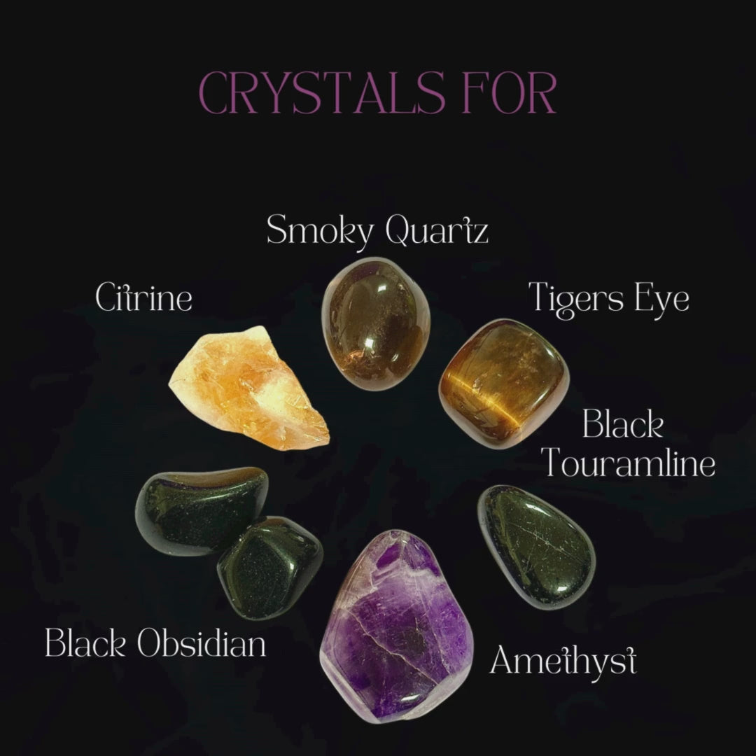 This powerful Protection Crystal bundle has been designed to help you feel grounded, safe, and shielded from negative energy. Each crystal has been selected to enhance protection, strength, and confidence. The crystals come in a black organza bag and include a free downloadable guide with crystal properties, how to use them, a meditation, and an affirmation to strengthen your protective energy.