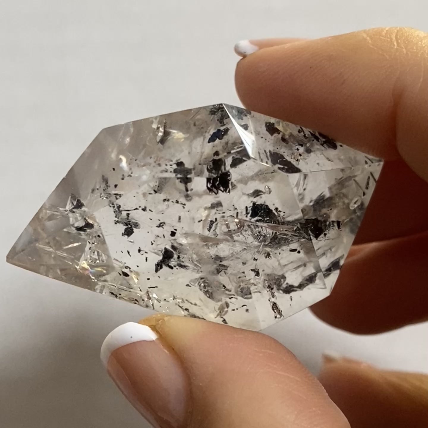 This is a natural marvel where the clarity of the quartz, the movement of ancient water, and the grounding presence of carbon unite to form a one-of-a-kind specimen. Both ends are naturally terminated, enhancing the flow of energy through the crystal and symbolising balance & connection.