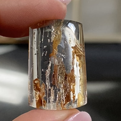 This is such a striking little piece. A clear Quartz block, polished into a clean, glassy form, with rich iron inclusions running through it like flames frozen mid-rise. Deep reds, burnt orange, and golden tones create that unmistakable fire effect, with layers and movement you can keep coming back to.