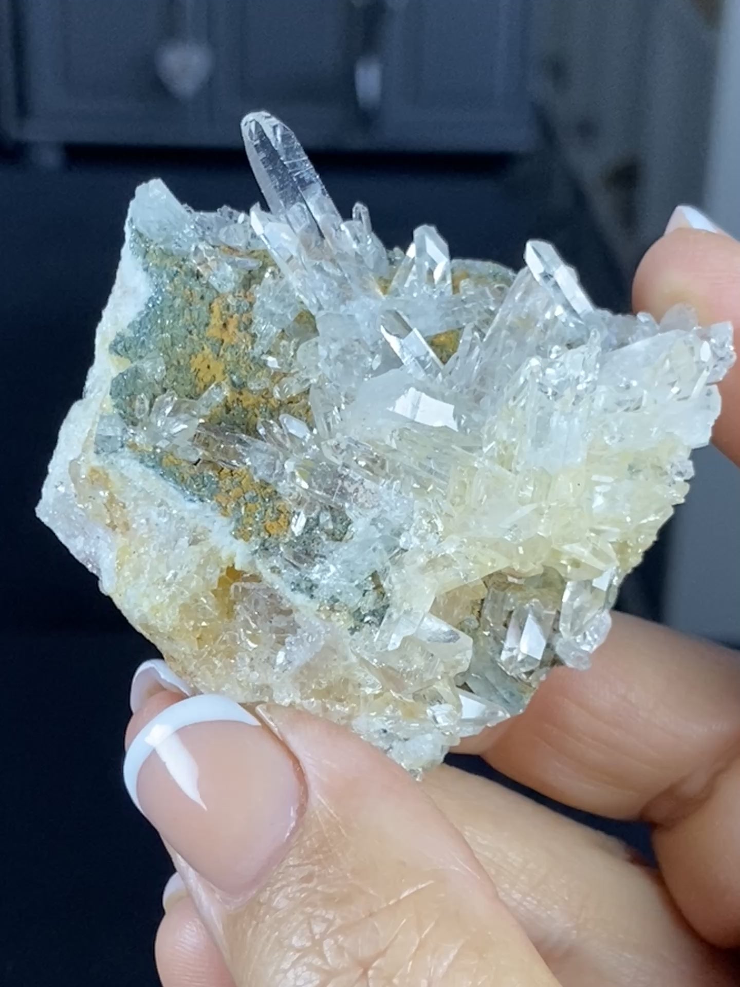 This luminous Lemurian cluster carries golden tones from natural limonite inclusions, blended with the soft green shimmer of fuchsite in the matrix. Together, they create a crystal of vitality, balance, and renewal — where golden light uplifts the spirit while fuchsite soothes and stabilises the heart.