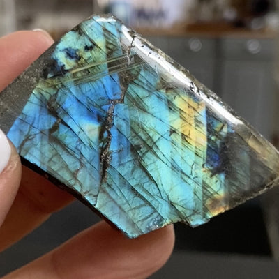 These Labradorite slices from Madagascar feel especially aligned with Year 1 energy – the year of beginnings, rebirth, and quiet but powerful turning points. Each piece holds exceptional colour. You will see flashes of blue, teal, green, gold, and in some pieces, vibrant orange, pinks, and purples. Polished on one side and left raw on the back. Some even show incredible colour on the rough side, as if the stone itself refuses to hide its magic.