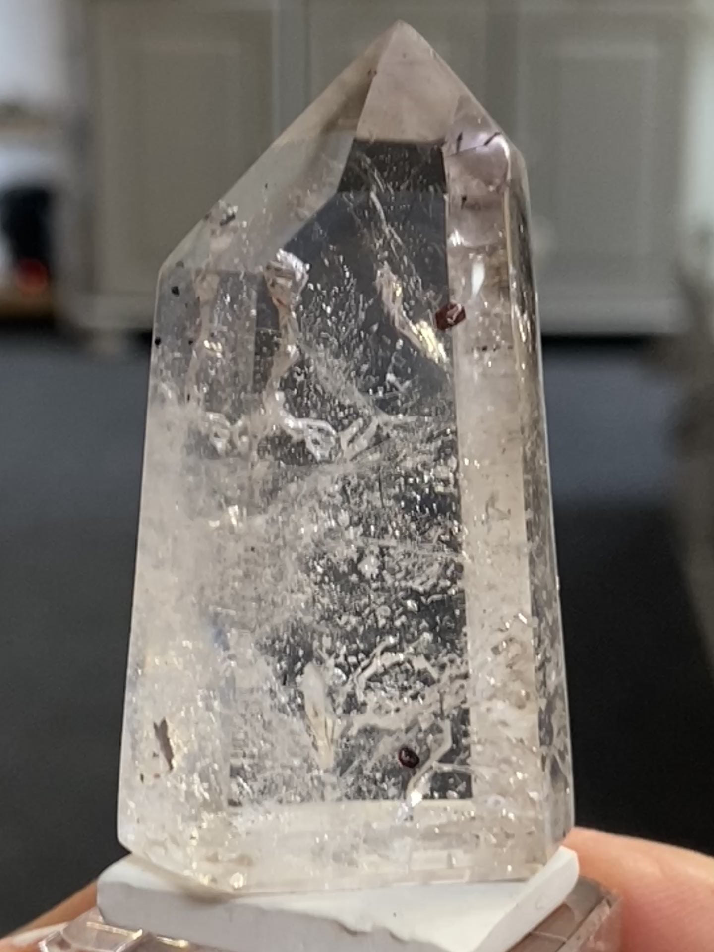 Inside, there’s a small section of Lepidocrocite along with red and golden rutile. Each inclusion adds depth and character, making this a piece to really get lost in when the light catches it.