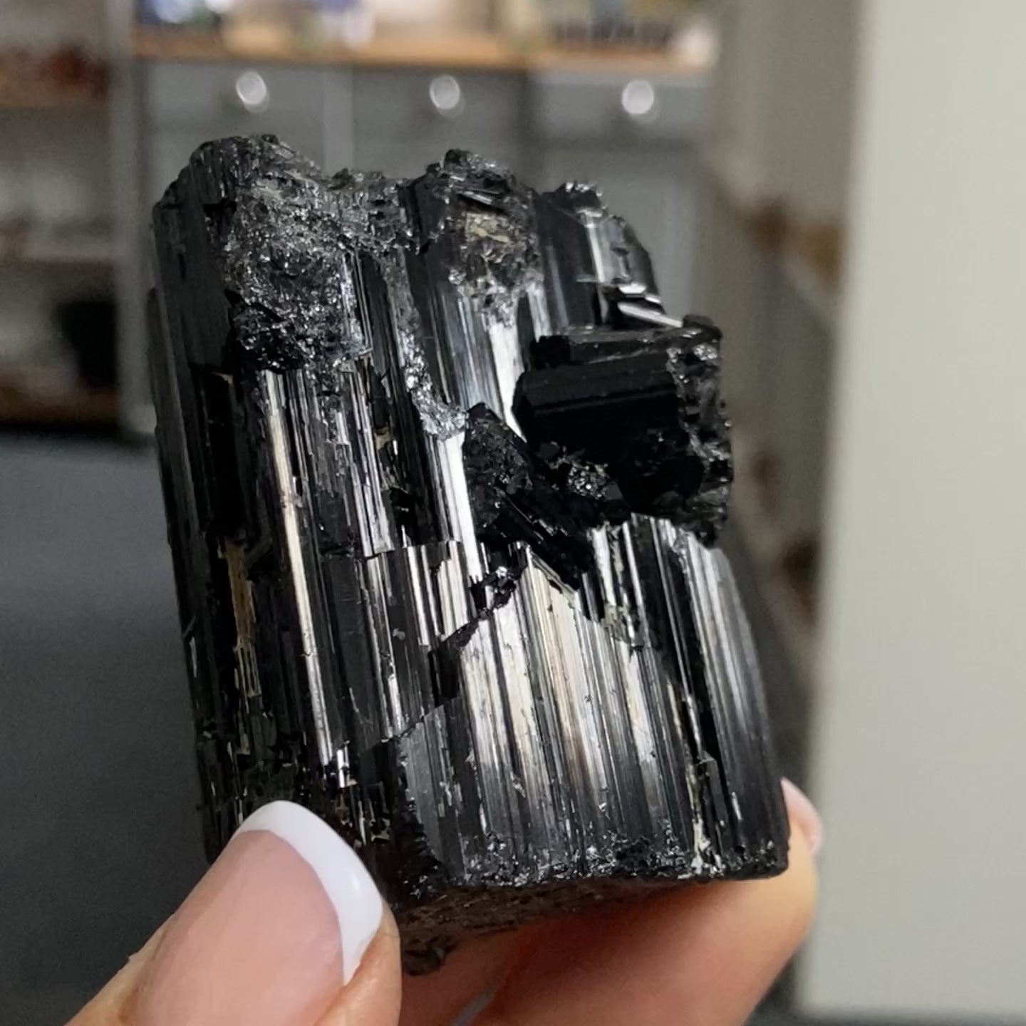A large, chunky piece of natural Black Tourmaline from Namibia with superb lustre and excellent structure. Namibian Tourmaline is known for its deep, mirror-like finish and dense composition, making it one of the most sought-after varieties of Tourmaline.