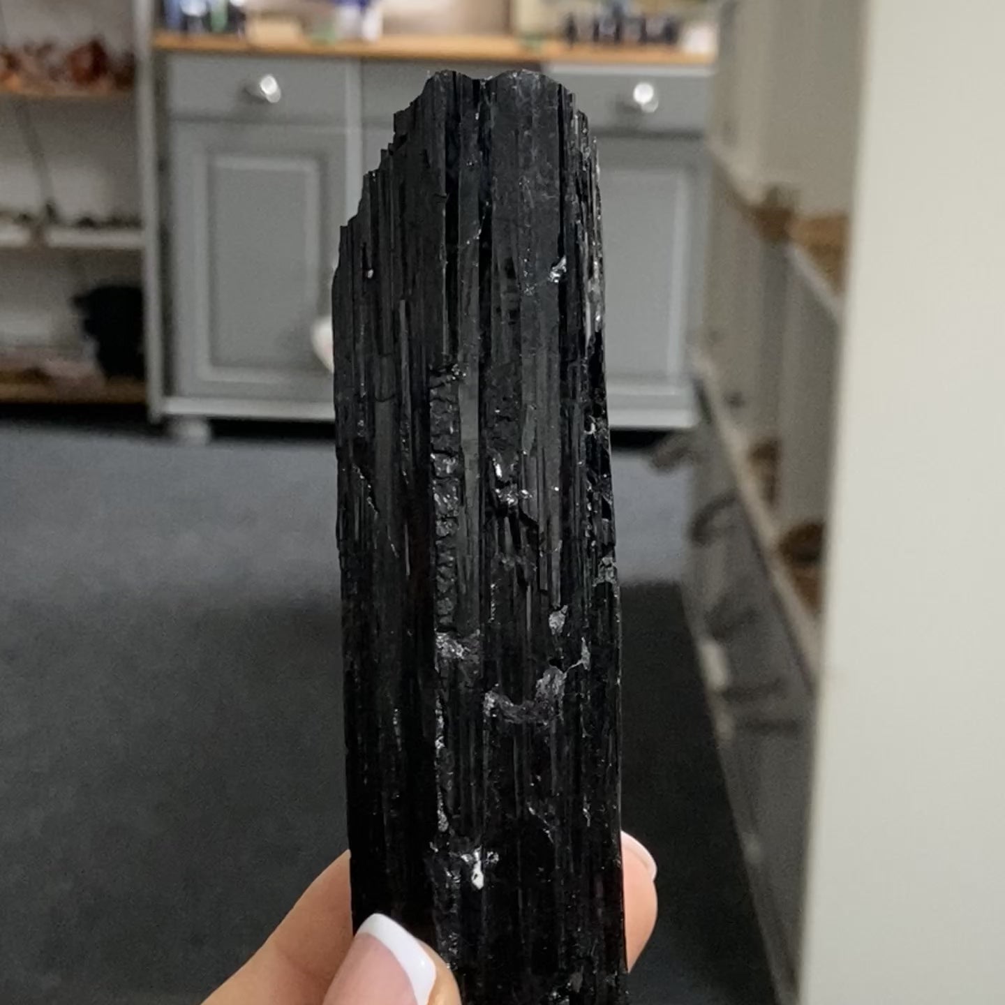 A superb, naturally formed Black Tourmaline rod from Brazil with excellent lustre and stability. This is a high-quality piece. Solid, well-structured, and not prone to flaking like many lesser pieces. The deep black sheen and strong striations make it both visually striking and energetically powerful.