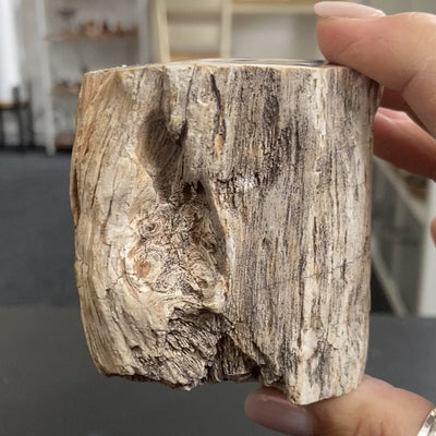 Another gorgeous Madagascan Petrified Log. Formed from ancient wood that slowly transformed into stone over vast geological time, this piece carries a rugged outer texture and a beautifully polished cut face, revealing rich natural patterns in earthy browns, creams, charcoal tones and warm honey shades.