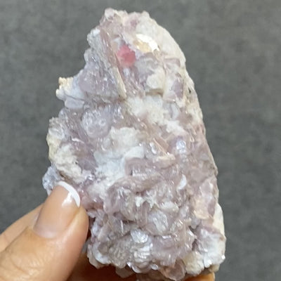 This is a gentle, softly textured piece from Brazil, mostly Lepidolite in that calming lilac tone with Muscovite discs tucked amongst the layers. The Muscovite catches the light in bright, silvery flashes, adding a lovely contrast to the softer Lepidolite blades. Sitting quietly within it all is a tiny, gem-bright Pink Tourmaline crystal, a little spark of colour that feels like a hidden treasure when you spot it.