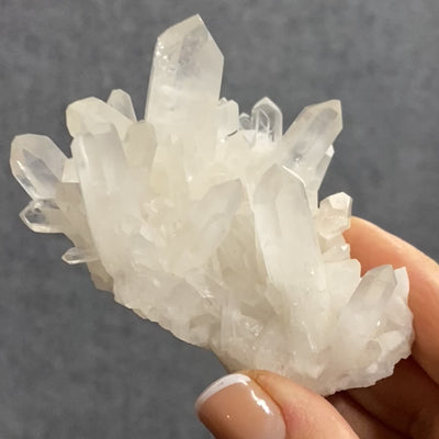 A bright, lively Quartz cluster from Madagascar, full of points rising in different directions. The formation feels open and uplifting, with a lovely mix of slender crystals and a few slightly larger ones anchoring the piece.