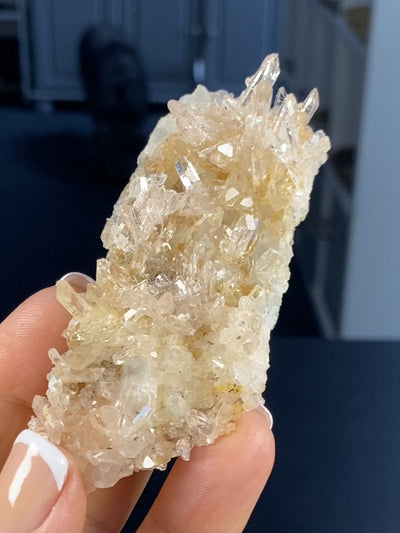 The wide crystalline surface sparkles with light, radiating evenly across its form. It carries a balanced frequency, both nurturing and empowering, making it a wonderful ally for meditation, healing, or altar work.