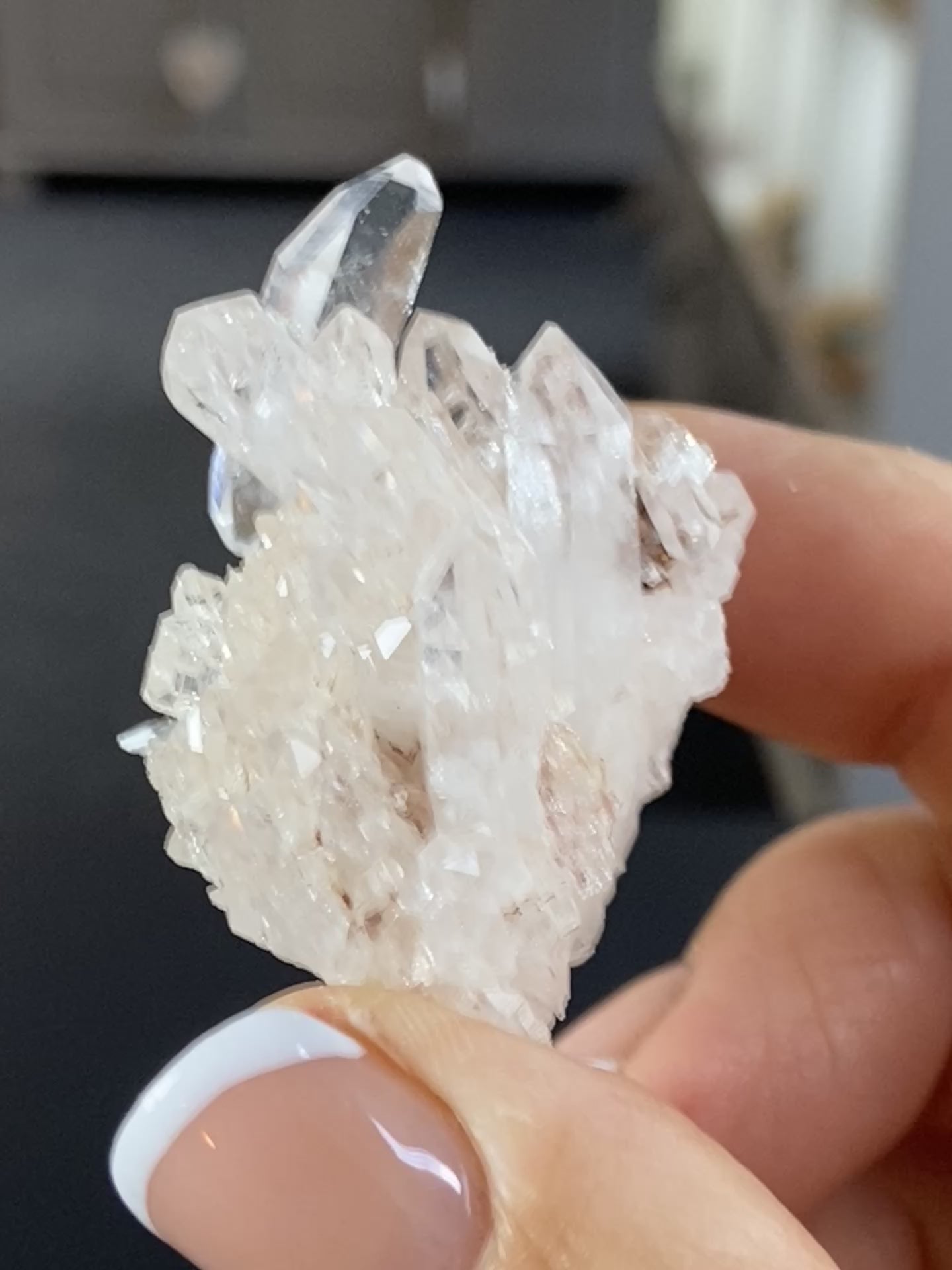 This petite Sacred Pink Lemurian cluster from the Santander region of Colombia carries both delicacy and strength. Its gentle blush is caused by natural manganese inclusions, giving it a nurturing, heart-based vibration.