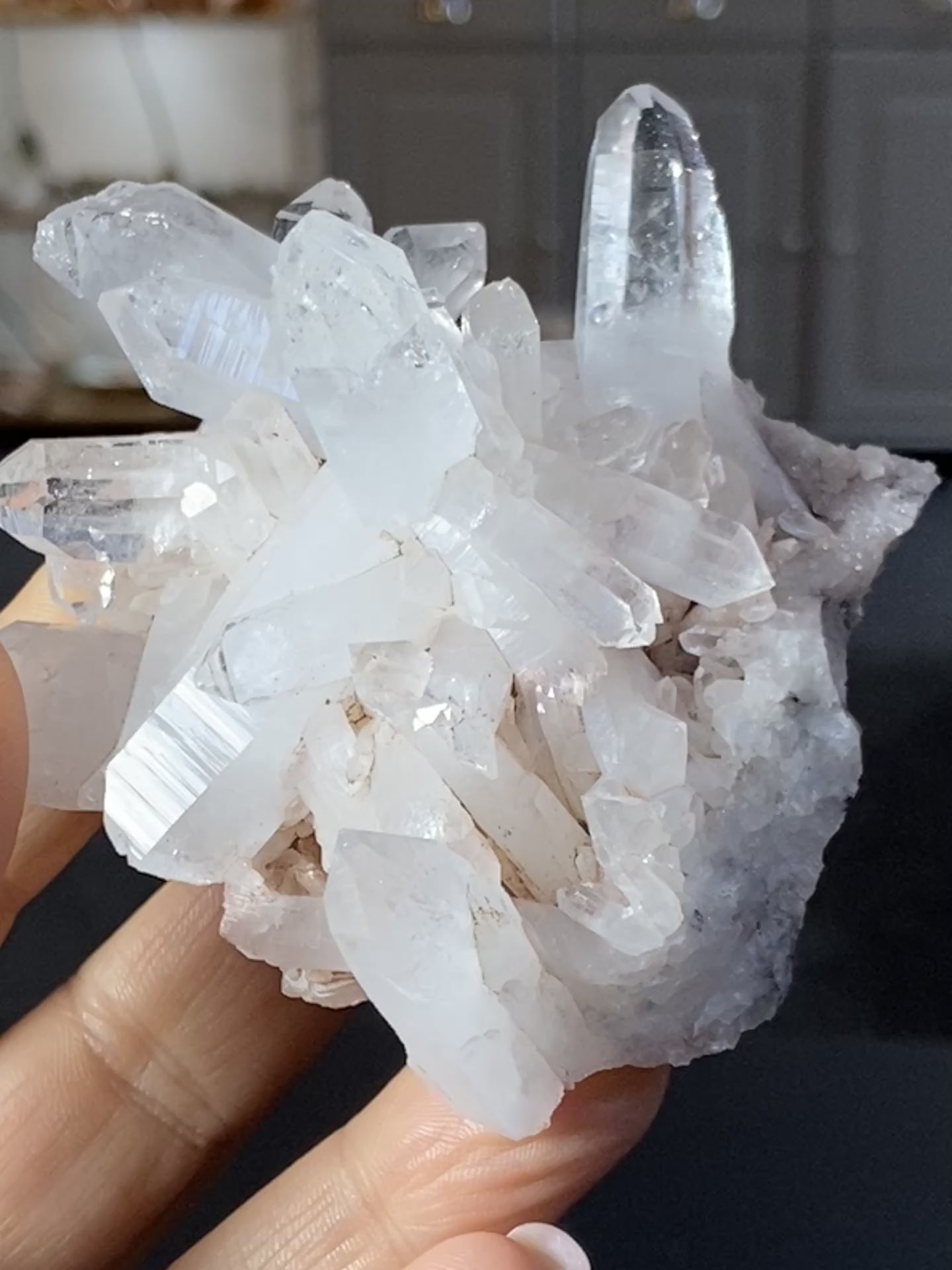 This Sacred Pink Lemurian cluster is beautiful. Its crystals radiating outward in all directions like a starburst. Each point is clear and beautifully defined