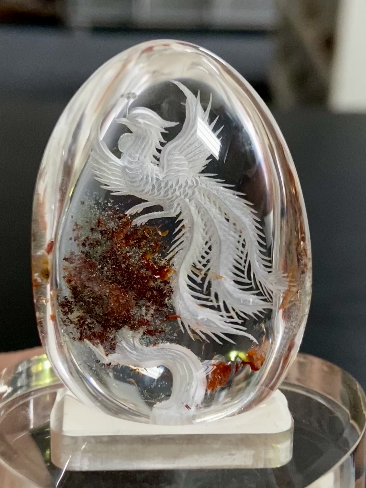 Phoenix Rising - Clear Quartz Oval with Diamond Tip Etching