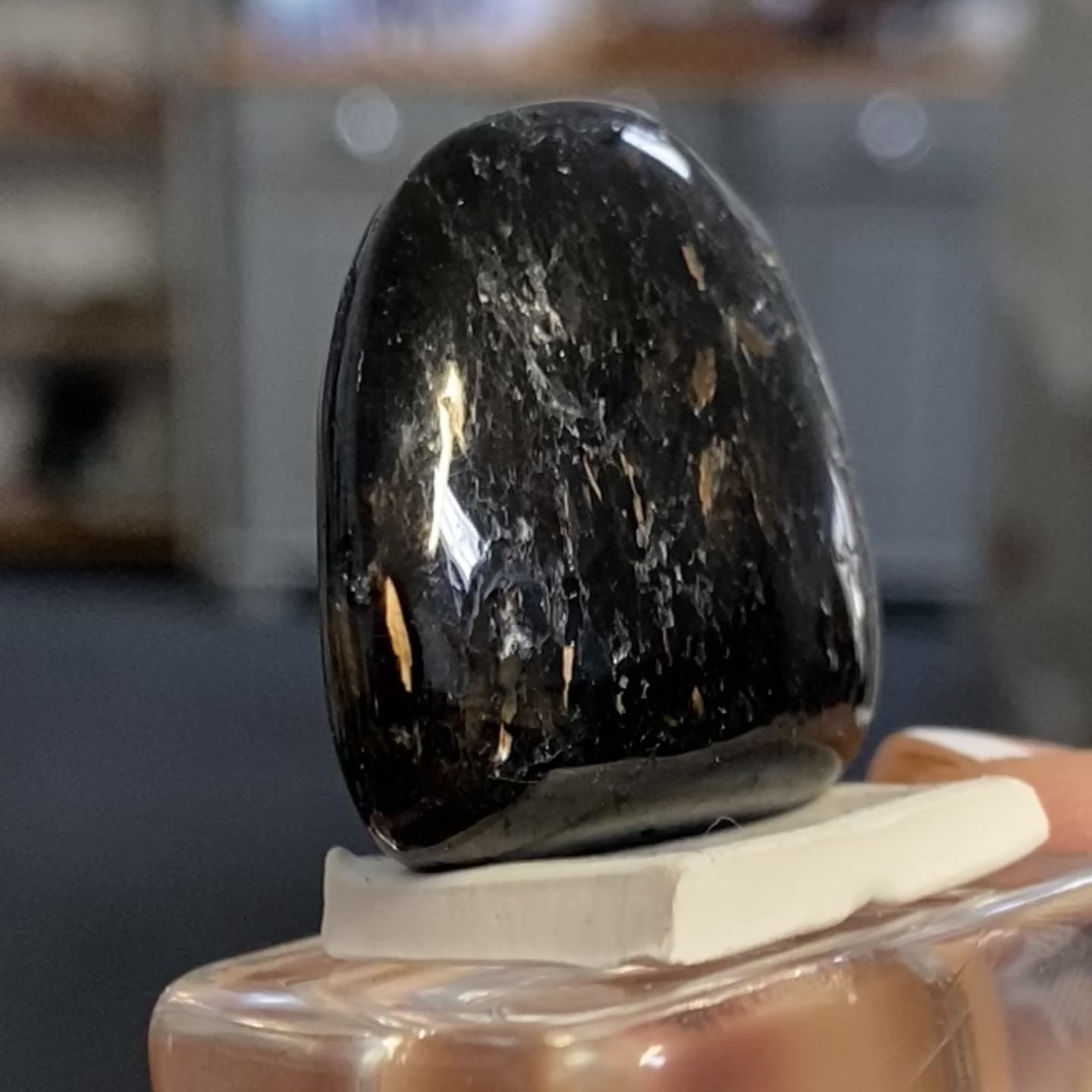 These top-grade Nuummite tumbles from Greenland are absolutely mesmerising. Deep, ancient black with shimmering flashes of gold, blue, and bronze that shift and move as the light changes. Each piece is unique, and every one reveals more in the flesh than the camera can ever capture. I’ve done my best to show them honestly in photos and video, but their true beauty is far more alive when held in the hand.