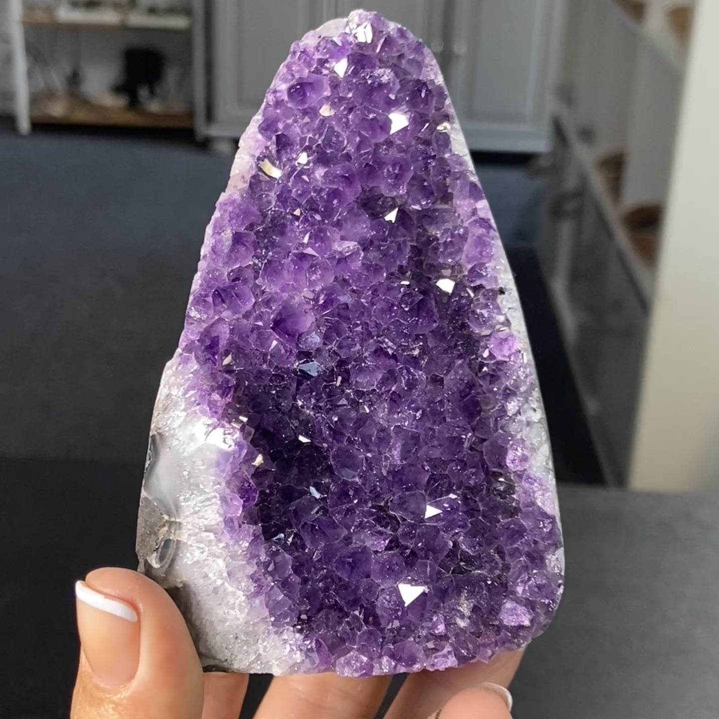 Uruguayan Amethyst tends to form with densely packed, high-shine points and a deep, regal purple hue. Beautiful to look at, and powerful to work with.