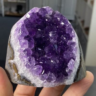 Uruguayan Amethyst tends to form with densely packed, high-shine points and a deep, regal purple hue. Beautiful to look at, and powerful to work with.