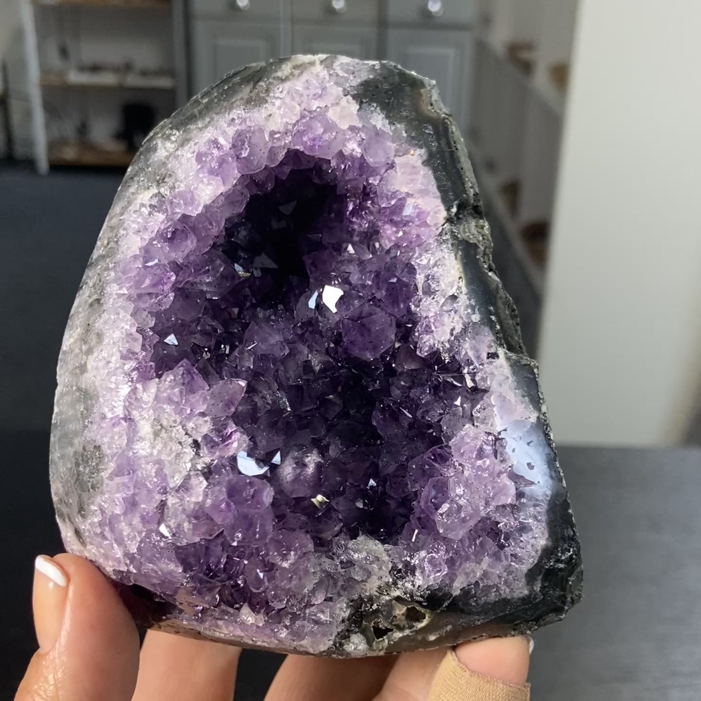 This beautiful Amethyst comes from Uruguay, known for producing some of the most vibrant and deeply coloured Amethyst in the world. With its rich purple tones and sparkling crystal points, this piece holds a calm, clear, and steady vibration—perfect for creating a peaceful atmosphere or deepening spiritual practice.