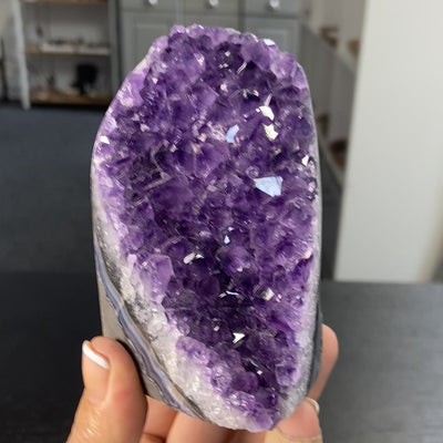 This beautiful Amethyst comes from Uruguay, known for producing some of the most vibrant and deeply coloured Amethyst in the world. With its rich purple tones and sparkling crystal points, this piece holds a calm, clear, and steady vibration—perfect for creating a peaceful atmosphere or deepening spiritual practice.